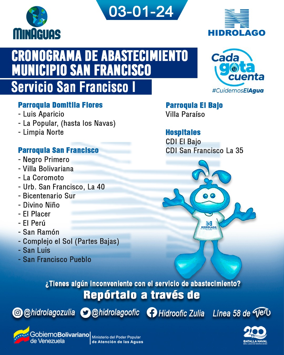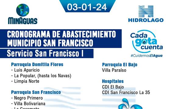 Hidrolago informa a los usuari@s del municipio San Francisco que ya se encuentra activo el Servicio San Francisco I