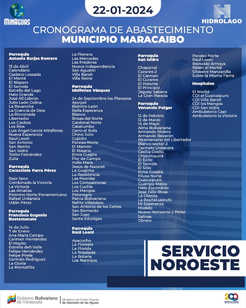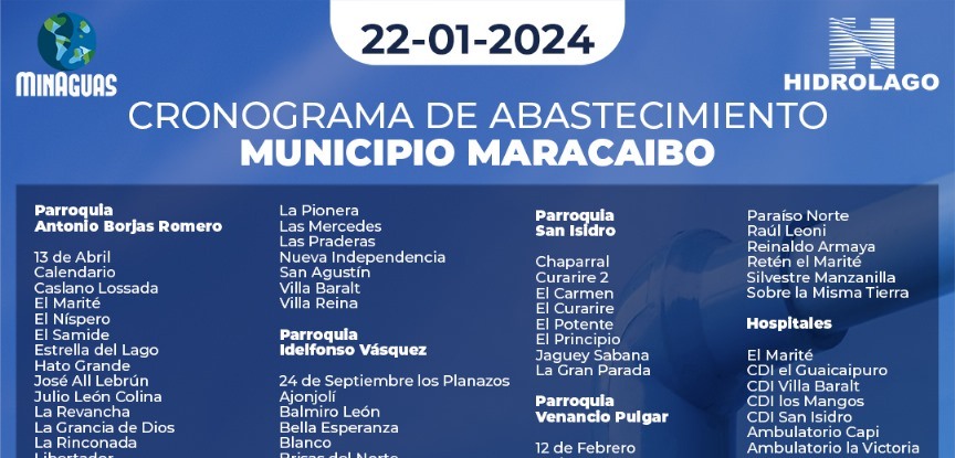 Hidrolago informa a los usuari@s del municipio Maracaibo, que ya se encuentra activo el Servicio Noroeste Navegación de entradas Comunicado: labores de mantenimiento en la aducción Tres Ríos – Cerro é Cochino Avanza plan de optimización de instalaciones hídricas y recuperación de caudal en Lagunillas y Machiques de Perijá
