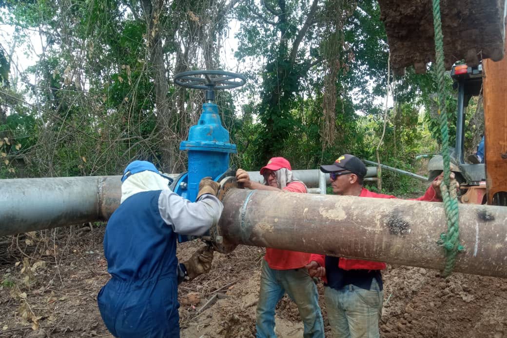 En ese sentido, las cuadrillas realizaron la construcción de una tanquilla de succión, instalación de bomba y motor de 150 Hp, así como la colocación de tuberías de descarga de 8 pulgadas de diámetro que se conecta a la tubería de 12 pulgadas para la distribución de más de 100 litros de agua por segundo, que benefician a más de 15 mil habitantes de esa localidad.