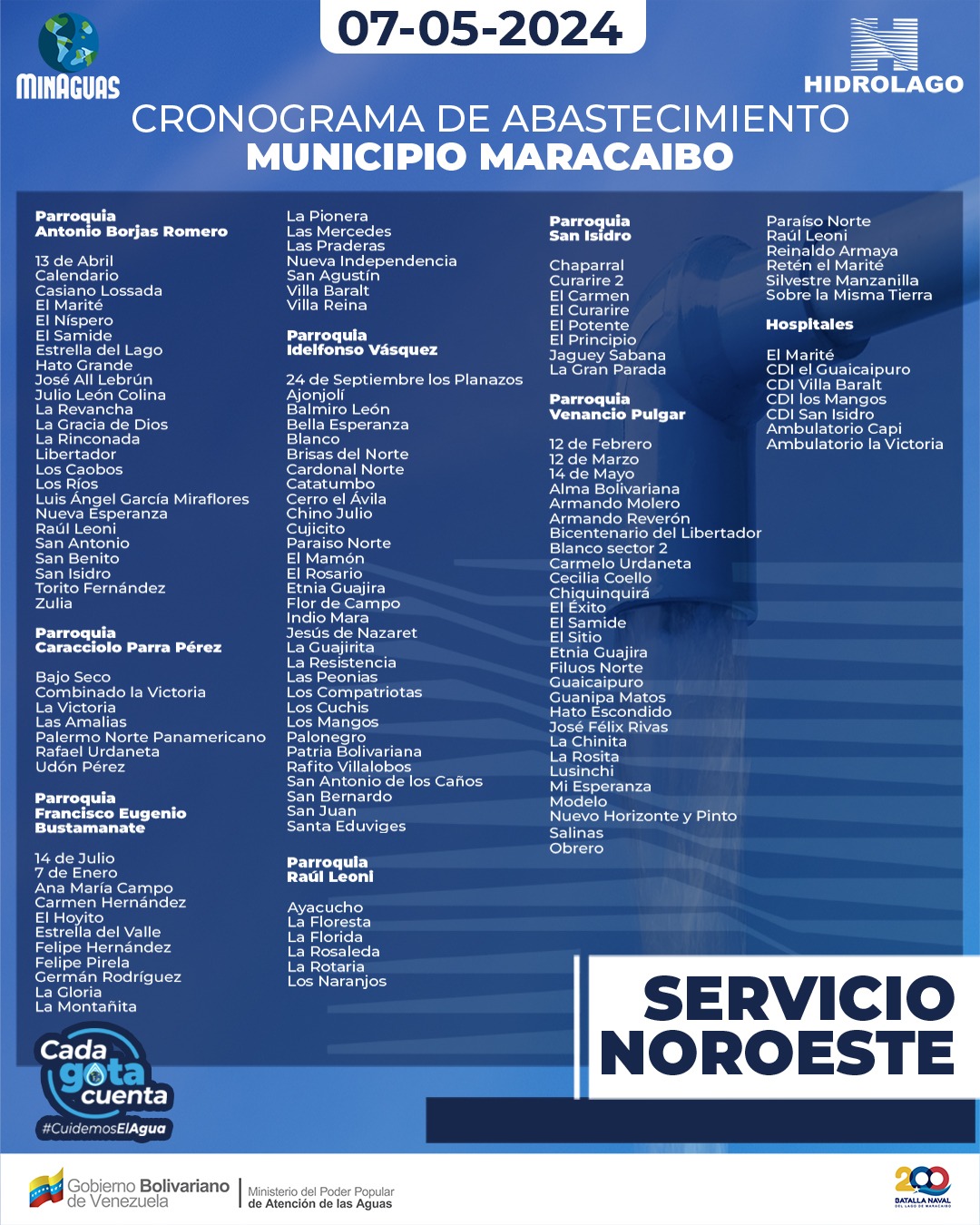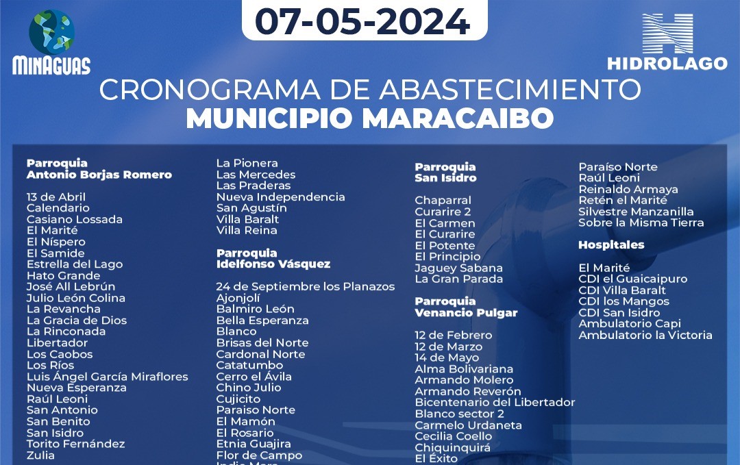 Hidrolago informa a los usuari@s del municipio Maracaibo, que ya se encuentran activos los Servicios Noroeste, y Raúl Leoni/ Matriz Las Lomas
