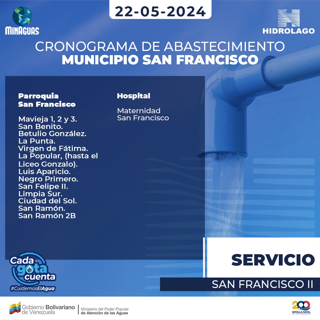 Hidrolago informa a los usuari@s del municipio San Francisco, que ya se encuentra activo el Servicio San Francisco II