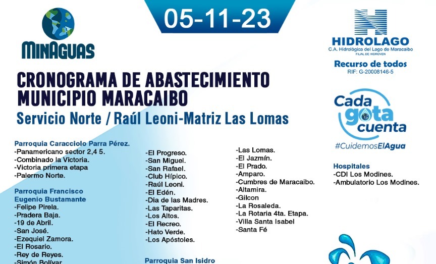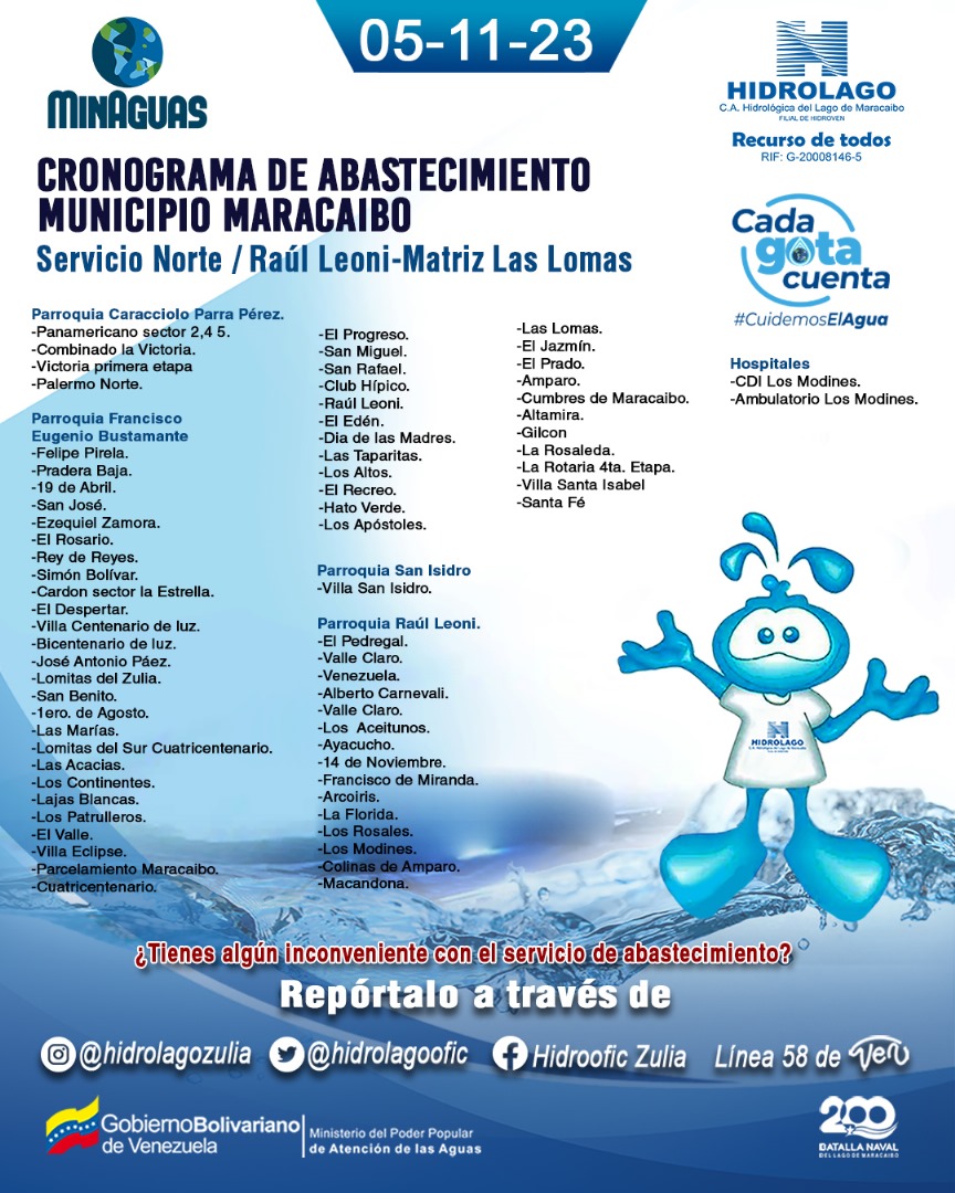 Hidrolago informa a los usuari@s del municipio Maracaibo, que ya se encuentra activo el Servicio Raúl Leoni/ Matriz las Lomas